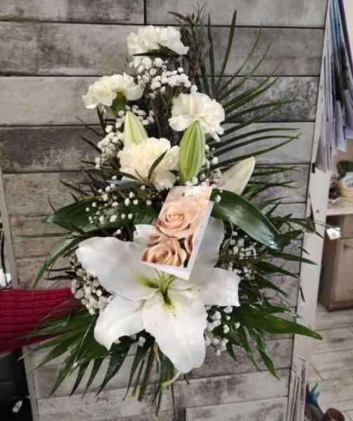 lilia, goździk, waksfloter, zieleń dekoracyjna.
